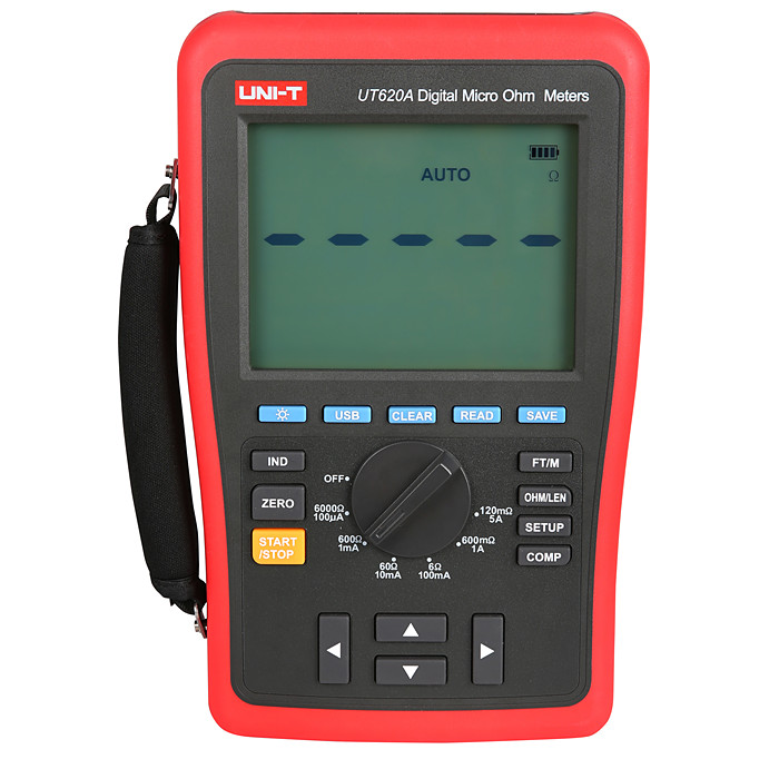 低欧姆表(毫欧表/微欧表),采用四线测量技术专门用于测量直流低电阻的仪器。低欧姆表测量电流达到5A 、10uΩ分辨率,测量电流达到10A 、1μ?分辨率,可对各种线圈的电阻提供高精度的测量。该系列产品具有比较功能,能自动判断产品是否合格;电线长度估算功能(FT/M),用测试结果来推断更长未知线缆的长度;USB接口输出,仪表能与PC双向交换数据;内置可充电锂电池,可循环使用等特点;便携性直流低电阻测试仪,可以用于窄小空间的室内环境,可方便地用于现场的故障排查。如:金属镀层电阻测量、电动机及小型变压器的绕组电阻测量、接地系统联结点的检测、电焊接点的完整性检测、断路器和开关的接触电阻测量、航天器和铁轨焊接点质量检测、接线端子与导线连接电阻测量、蓄电池并联连接检测、配电盘母线及导线接点检测、机械结合点测量测量开关及接插作、继电器等电器元件的接触电阻、测量金属材料。电阻和电线电缆的导线电阻。船、车、飞机的金属铆接电阻等