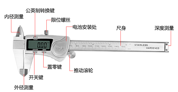 游标卡尺量程不小于150m;精度:0.02mm消防水管件,灭火器直径等...