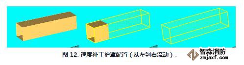 在Velocity Patch Tutorial 中,风扇由指定轴向 (X) 速度的区域表示。横向(Y 和 Z)速度未定义。速度补丁方法在 FDS 中实施,作为一种近似夹带喷水器流中空气的方法。